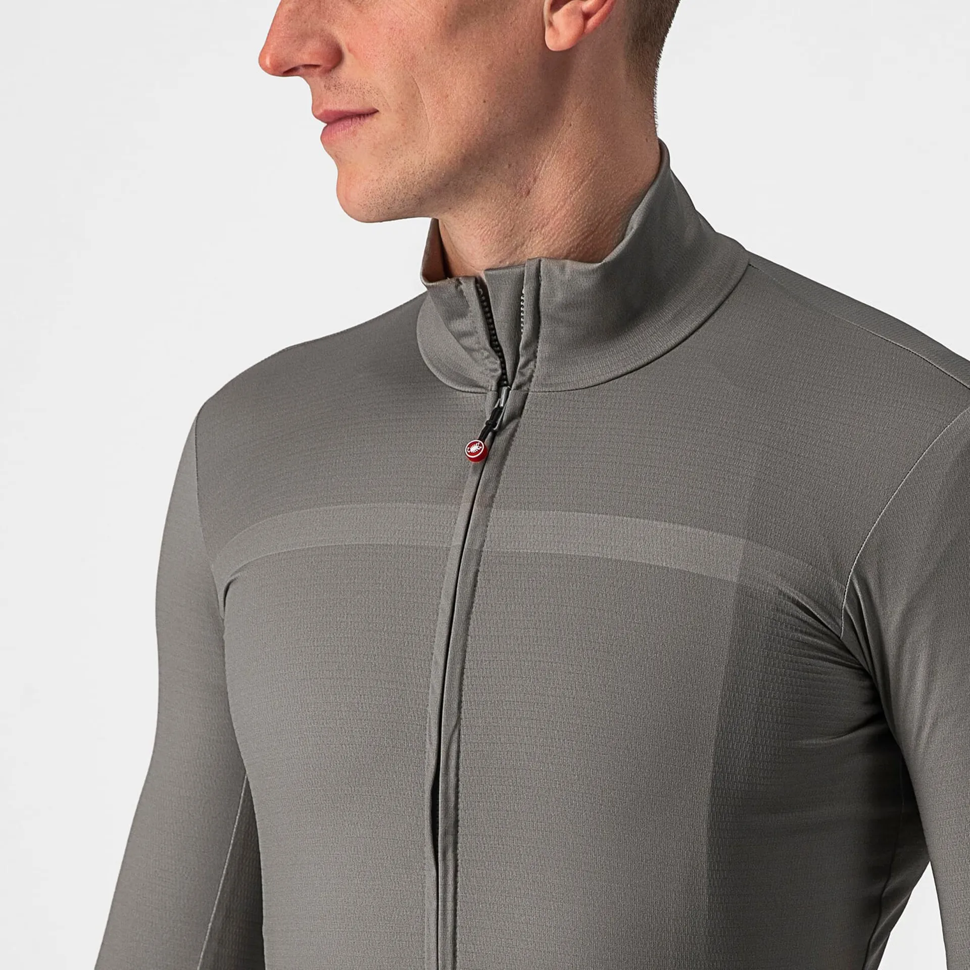 The jersey uses Castelli's mid-weight Warmer X-Stretch fabric throughout. This fabric has a touch of spandex in it to make it high stretch, so it has a close-to-body aero fit without feeling restrictive. It is lighter than other thermal jerseys, but this makes it ideal for when a short sleeve jersey feels like a bit of a push and for high intensity rides where it is easy to overheat.