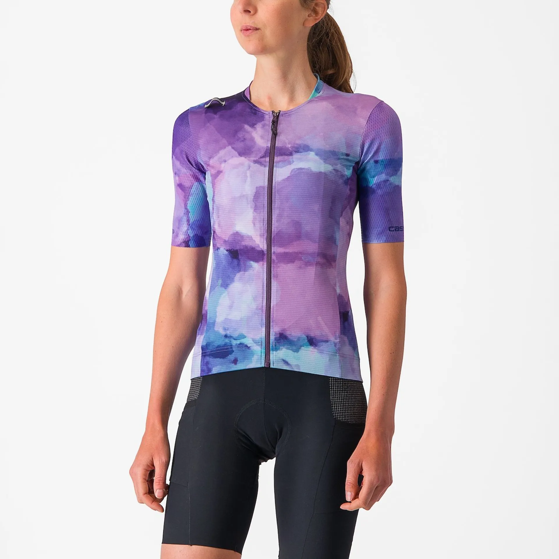 Its soft, raw-cut sleeves are made from a dimpled fabric that shaves watts, while the body is crafted from material designed by Castelli to be breathable and unrestrictive, but also form-fitting and fast.
