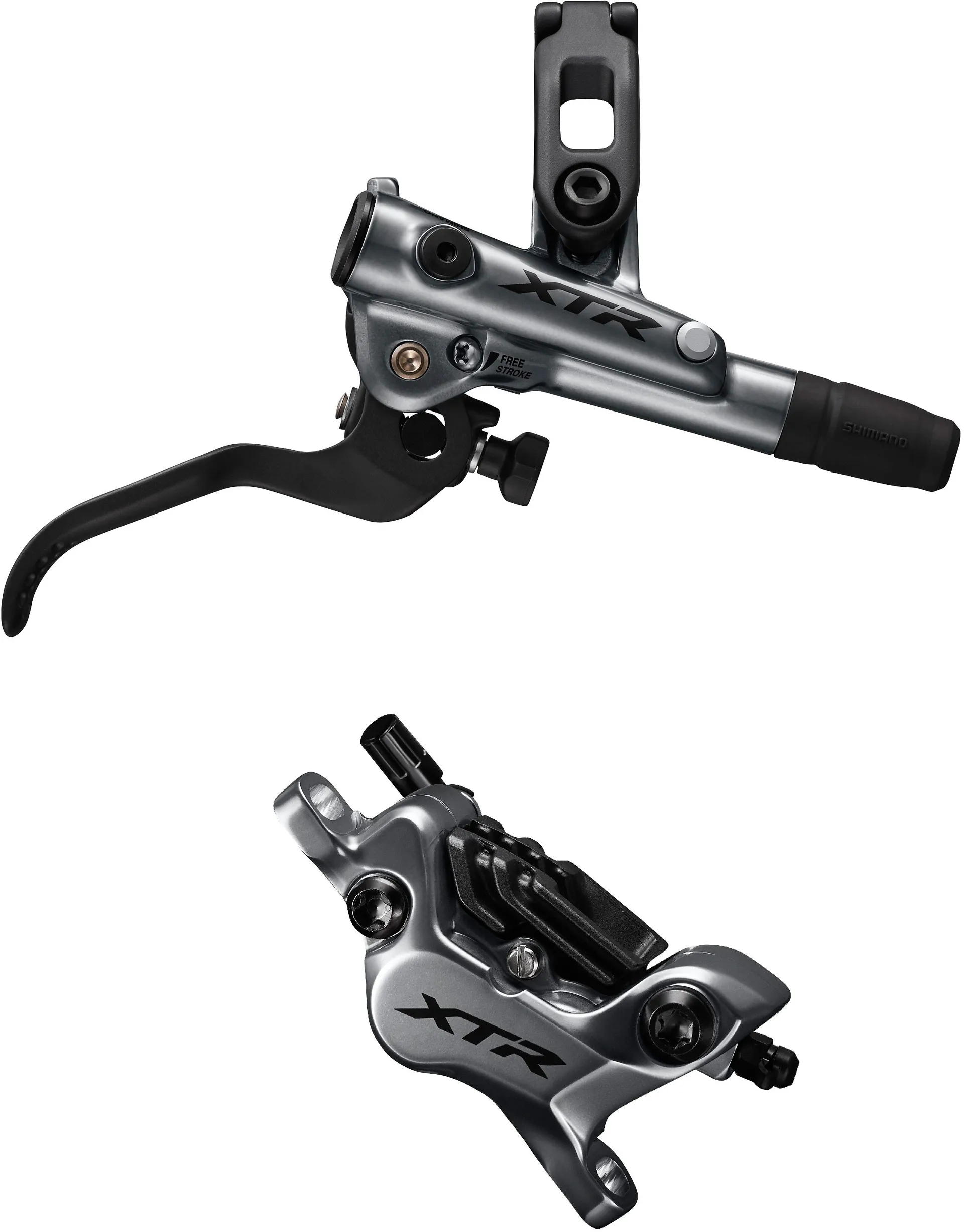 The Shimano XTR bled I-spec-EV ready brake is a lever/post mount 4 pot calliper brake is recommended for use with Ice Tech Centre-Lock rotors for optimum braking performance with a choice of 160mm, 180, or 203mm.