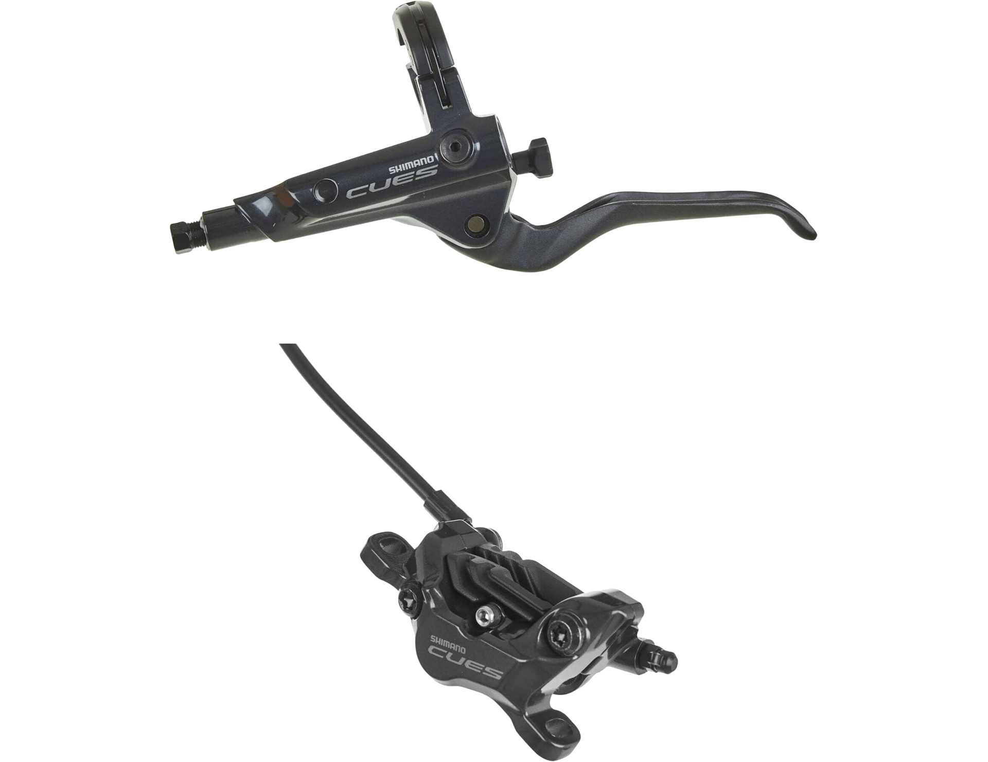 The Shimano CUES BR-U8020/BL-U8000 hydraulic disc brake system combines strong braking performance with ergonomic comfort and easy setup.Designed with a robust 4-piston post-mount calliper and alloy lever, it offers exceptional modulation and stopping power. The hinged clamp and tool-free reach adjustment make installation and personalisation simple, while the use of non-corrosive mineral oil ensures clean, reliable operation. The system is compatible with both Center Lock and 6-bolt rotors, giving riders flexibility for different setups. Fully bled and ready to install, the kit includes sintered metal pads for powerful braking and spare fittings for easy hose adjustment.