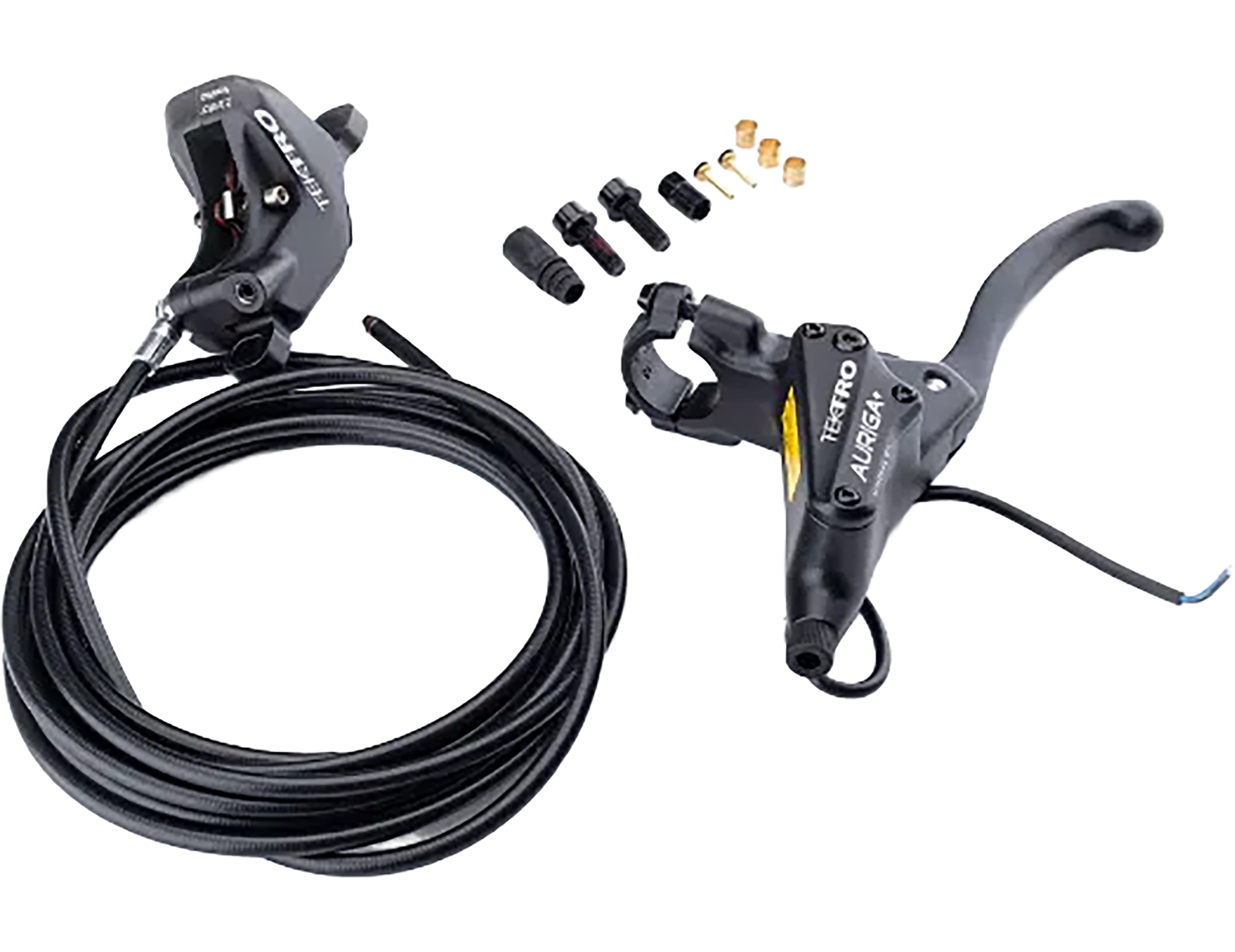 The Tektro HD-E740 Auriga Plus brake is a hydraulic brakeset for use with ebikes requiring an electrical cut-off to the motor when the brake lever is applied. The Tektro E740 comes pre-bled however the lever is not attached so that it can be fitted to internal routing and optimum hose length can be achieved. The cut off cable will need to be professionally attached to the existing cut off cable for the ebike motor system.