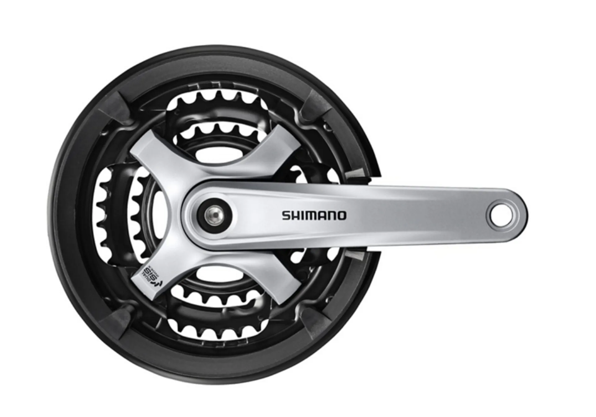 The Shimano Tourney FC-TY701 42/34/24 Chainset 170mm Crank is compatible with 3x8, 3x7, and 3x6 speed drivetrains and delivers reliable, precise, Dual SIS Shifting.