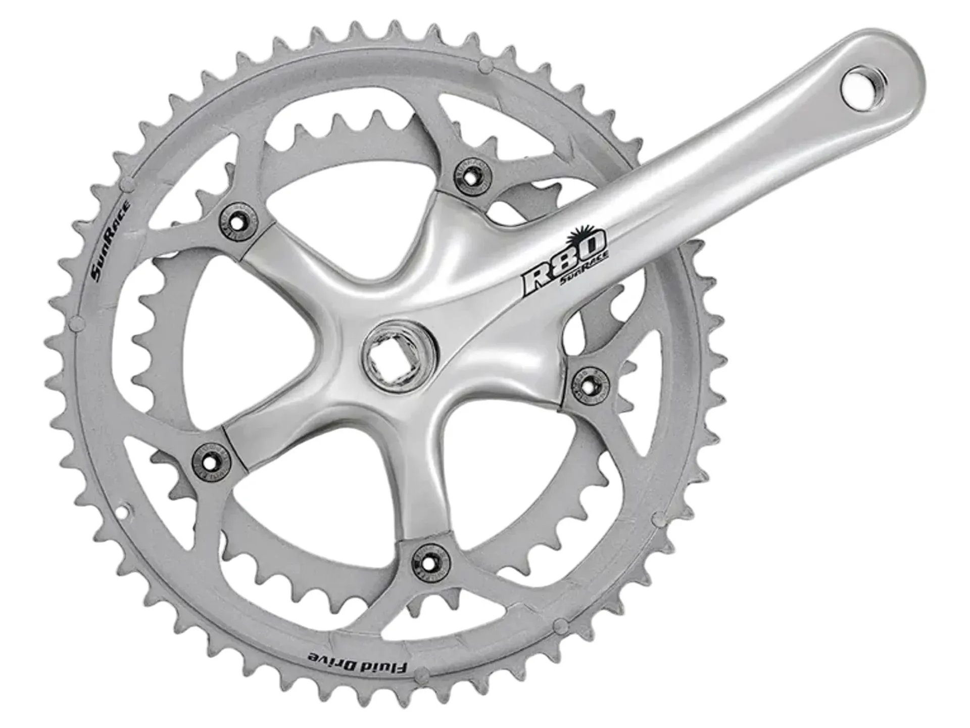 The Sunrace FCR818 is a forged 6061 alloy road crankset designed for smooth performance. This super fluid drive chainset is compatible with 8-speed drivetrains and features a durable construction.