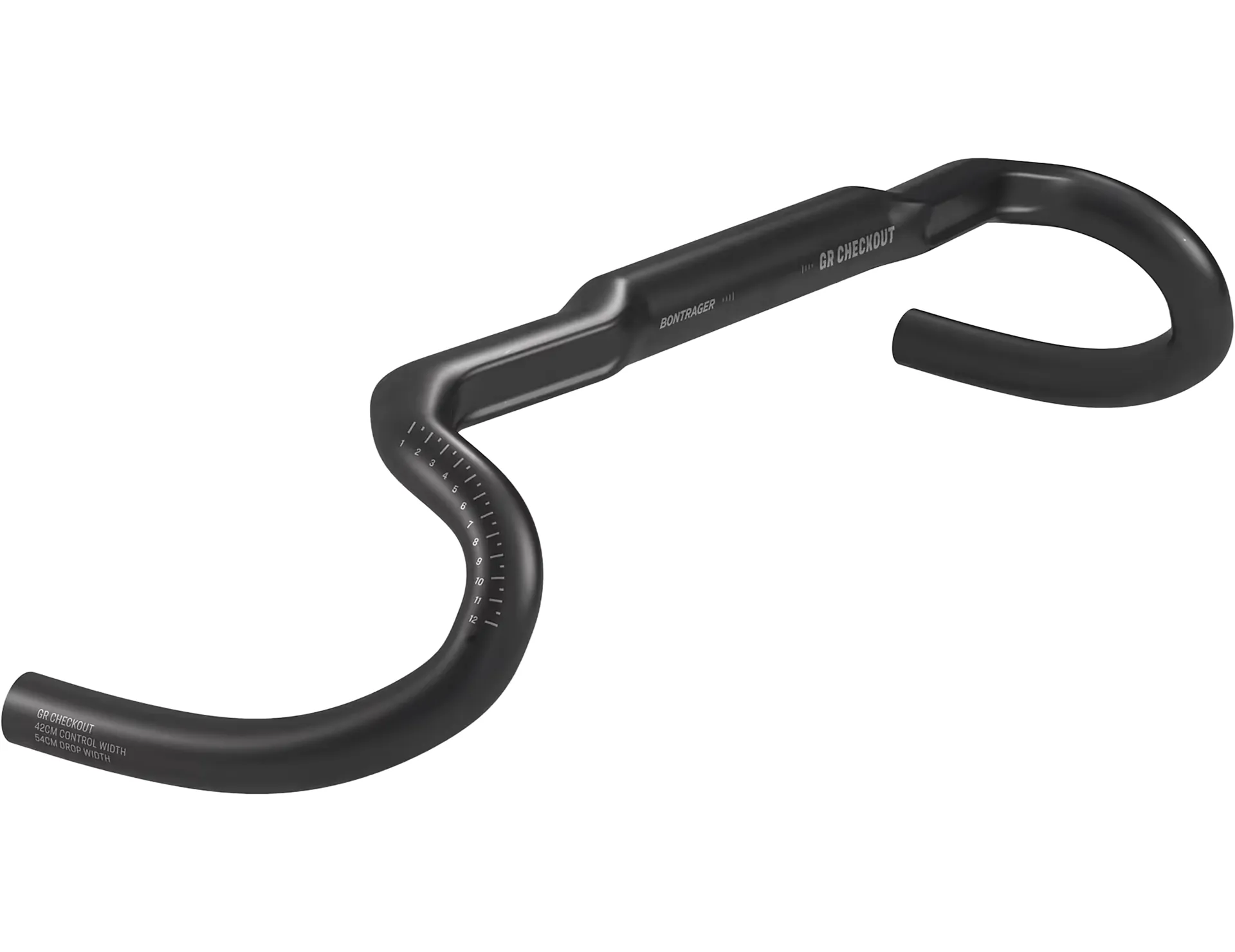 The Bontrager GR CheckOUT gravel handlebar sets a new standard in comfort and control for the gravel rider. The added backsweep and downsweep allow for a more natural arm, wrist and hand position. The integrated riser design brings stability and comfort, while the wider design and flared drops add control and confidence.