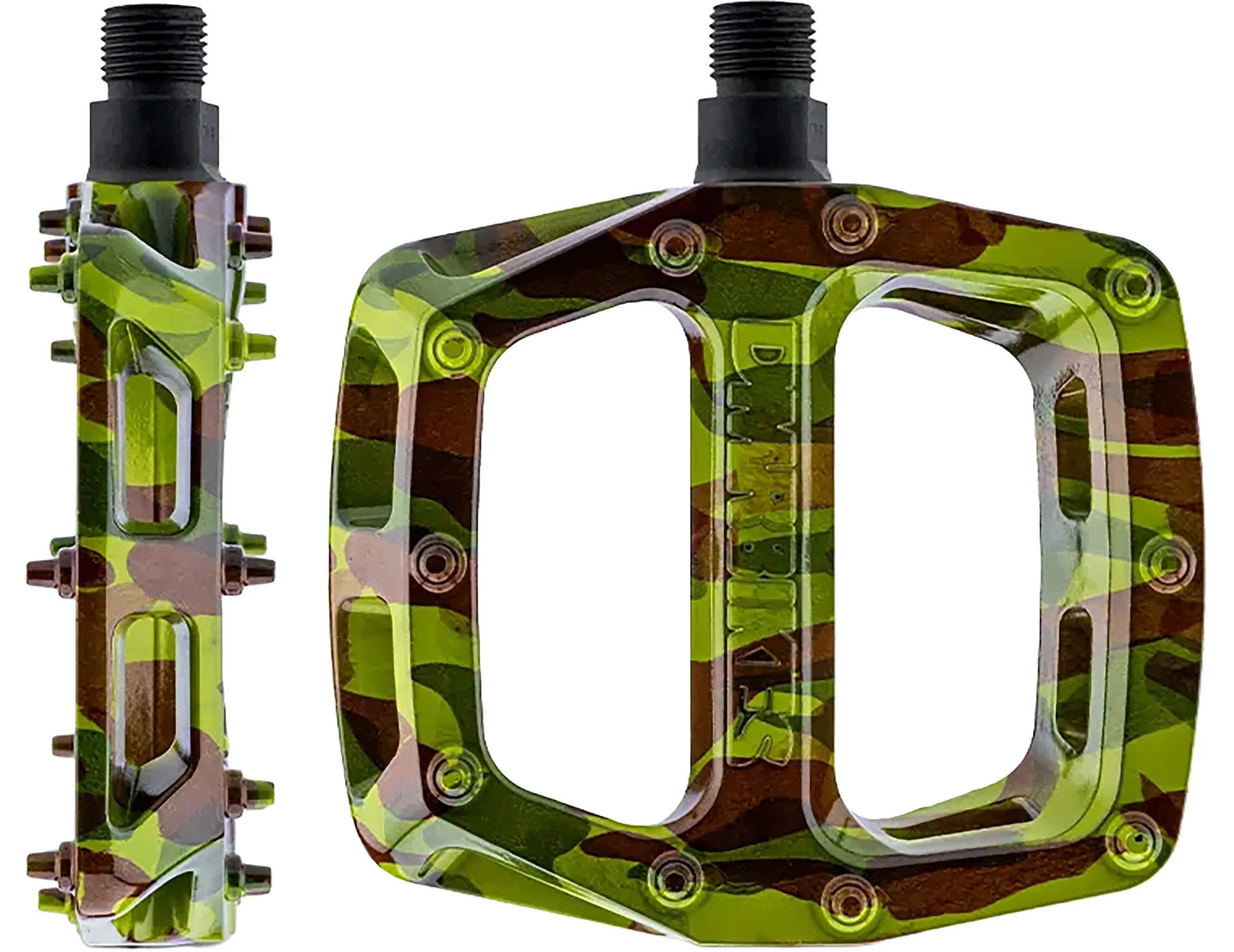 The V6 Pedals have the same concave footprint and narrow profile that DMR pedals are known for, with a large contact platform and moulded pins providing perfect grip in all Mountain Bike and Trail conditions and any Dirt Jump or Street scenes. These pedals are made of a tough Nylon construction whilst spinning on their new Dual DU Bush system, making them extremely durable and reliable.