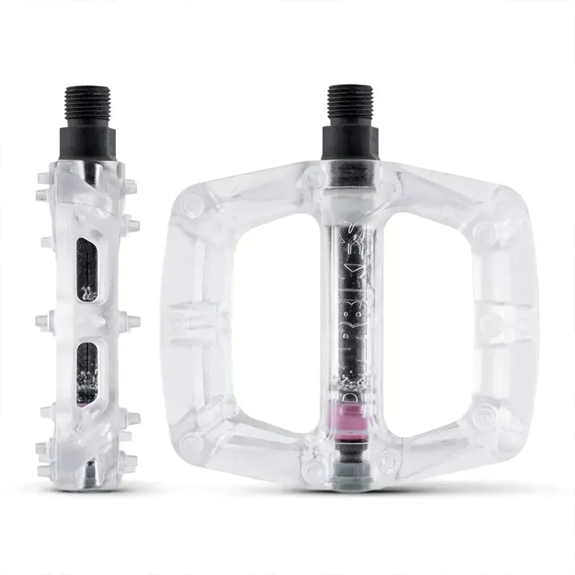 The DMR V6 MTB flat pedals are the nylon evolution of the V12 concave body design. These pedals feature the same concave footprint and slimline profile that DMR pedals are known for. They provide a large contact platform and moulded pins, ensuring excellent grip in all mountain biking and trail conditions, as well as for dirt jump or street setups. DMR V6 pedals are constructed from tough nylon and utilize the Dual DU Bush system, making them extremely durable and reliable.