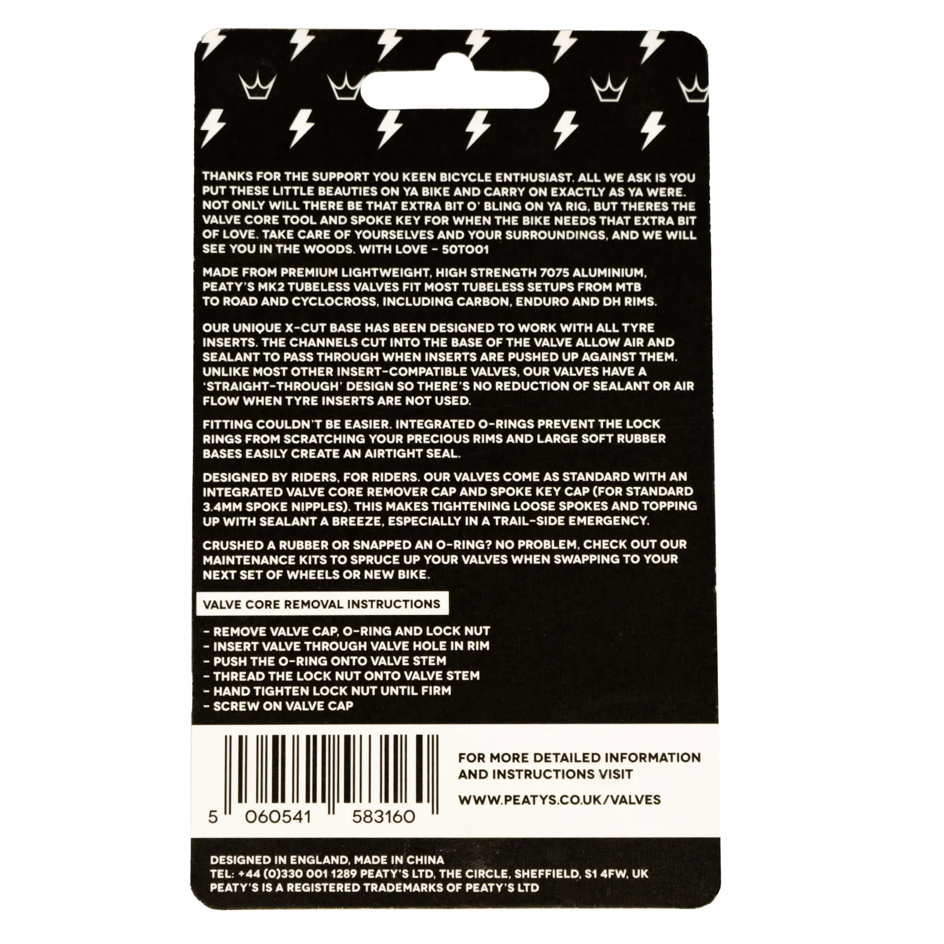 Made from premium lightweight, high strength 7075 aluminium, Peaty's MK2 Tubeless Valves fit most tubeless setups from MTB to road and cyclocross, including carbon, enduro and DH rims.