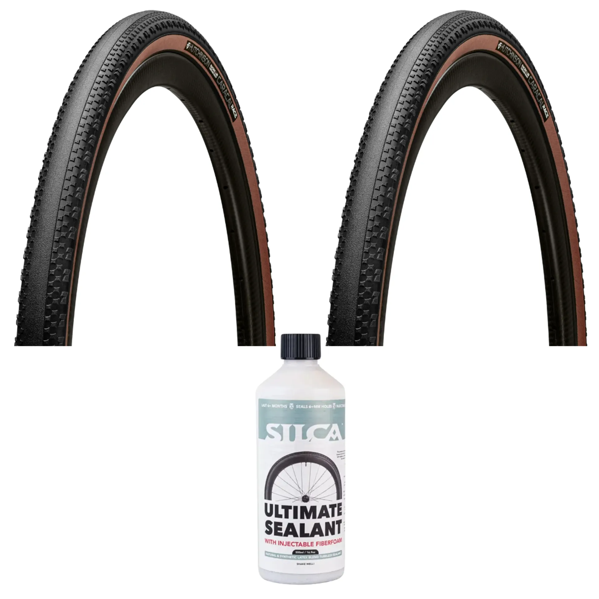 Hutchinson Caracal Race TR 700 x 40 Gravel Tyre Pair in Tan Wall with Silca Ultimate Tubeless Sealant v2 500ml BundleHutchinson Caracal Race Tubeless Ready Gravel Tyre in Tan Wall