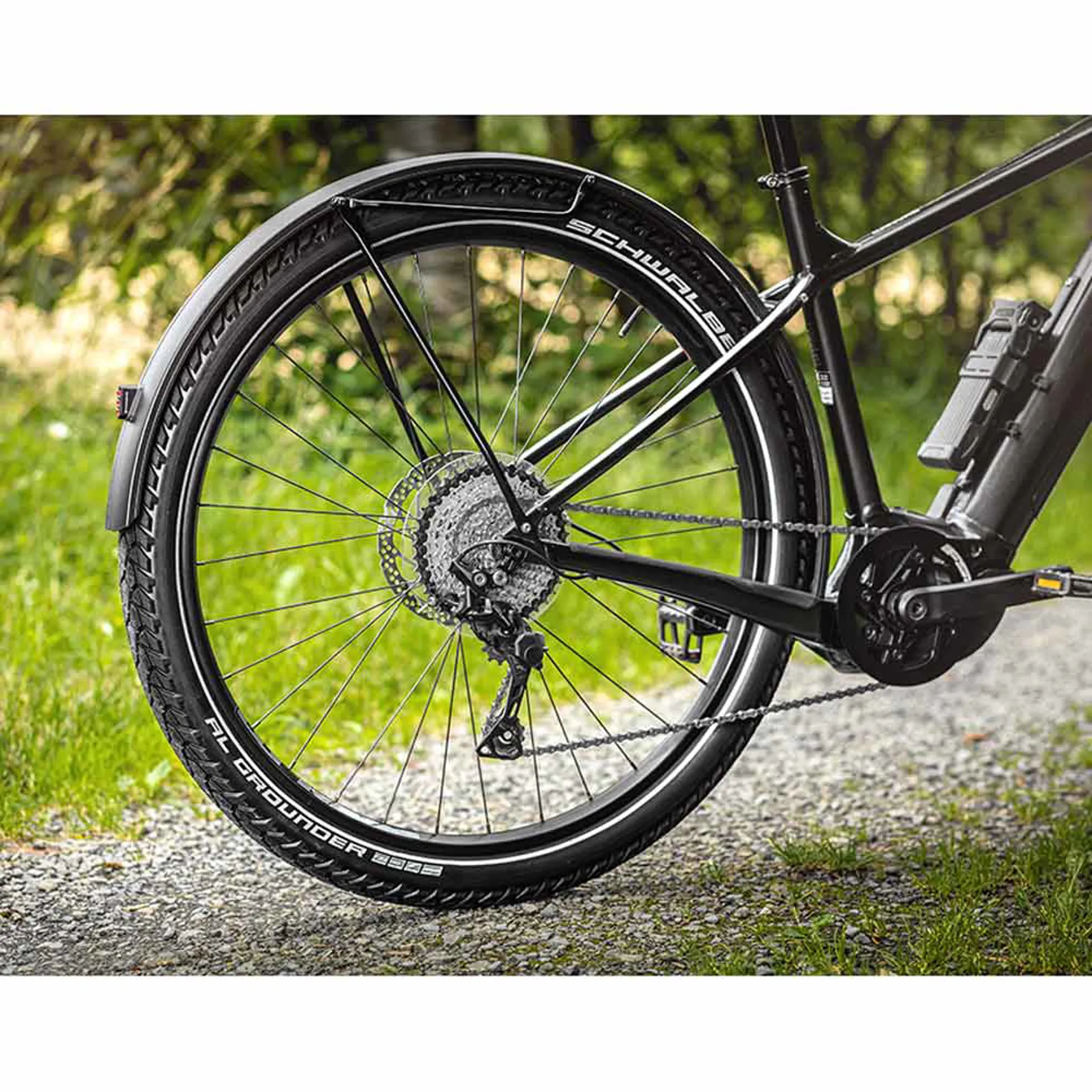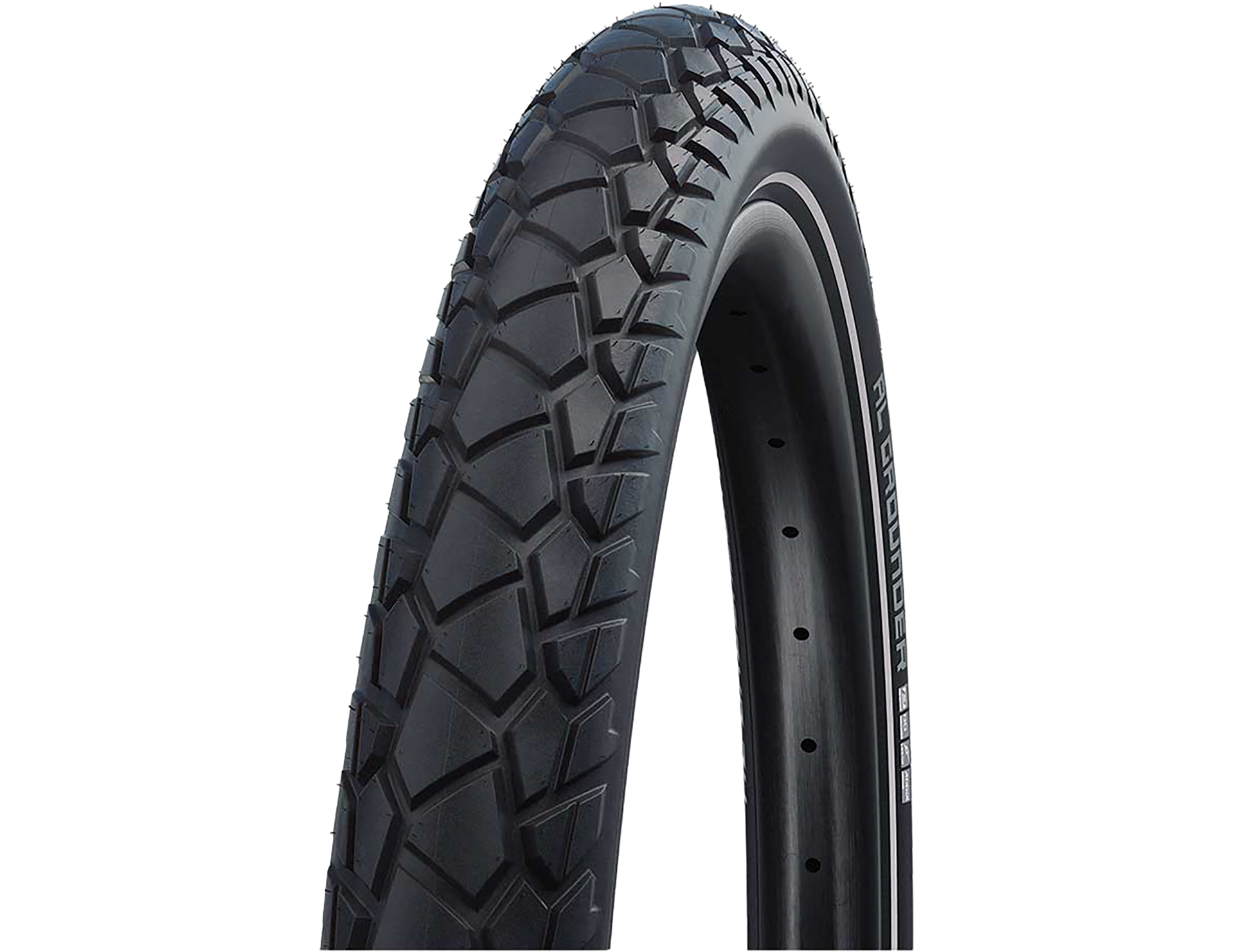 A true all-round capability for use on roads, dirt tracks, and easy trails. With its unique tread design, it runs quietly and quickly on asphalt while providing sufficient stability on unpaved surfaces. Equipped with the DOUBLE DEFENSE construction and Addix Compound, the Al Grounder achieves high puncture resistance and an optimal balance between low rolling resistance and sufficient grip.