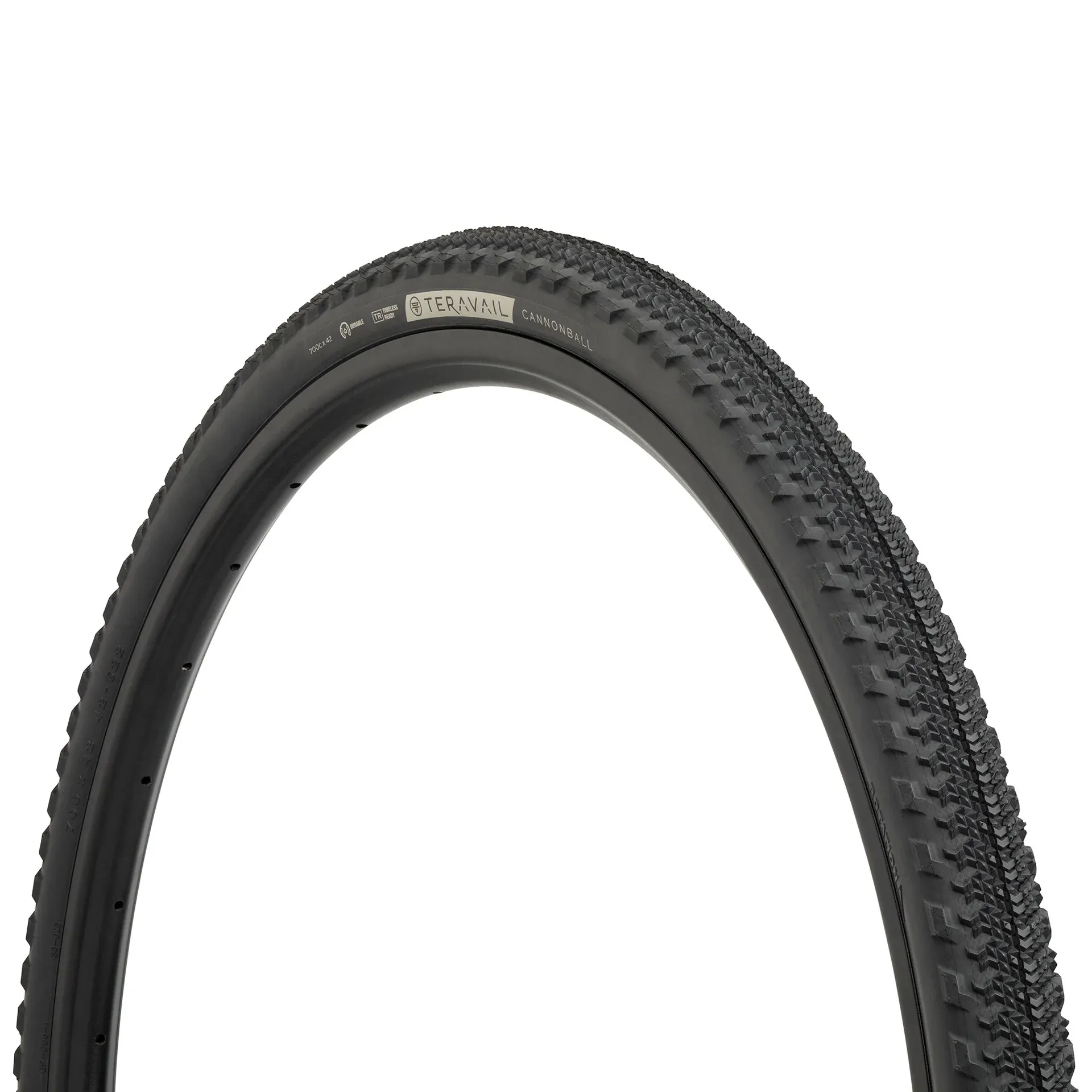 The Cannonball is a go-to gravel race tire for normal conditions. The tread pattern features a directional, tight-knit center tread that sheds dirt and debris to decrease rolling resistance, and side knobs for effective cornering traction. Teravail's Cannonball is built for all-around gravel riders and racers.