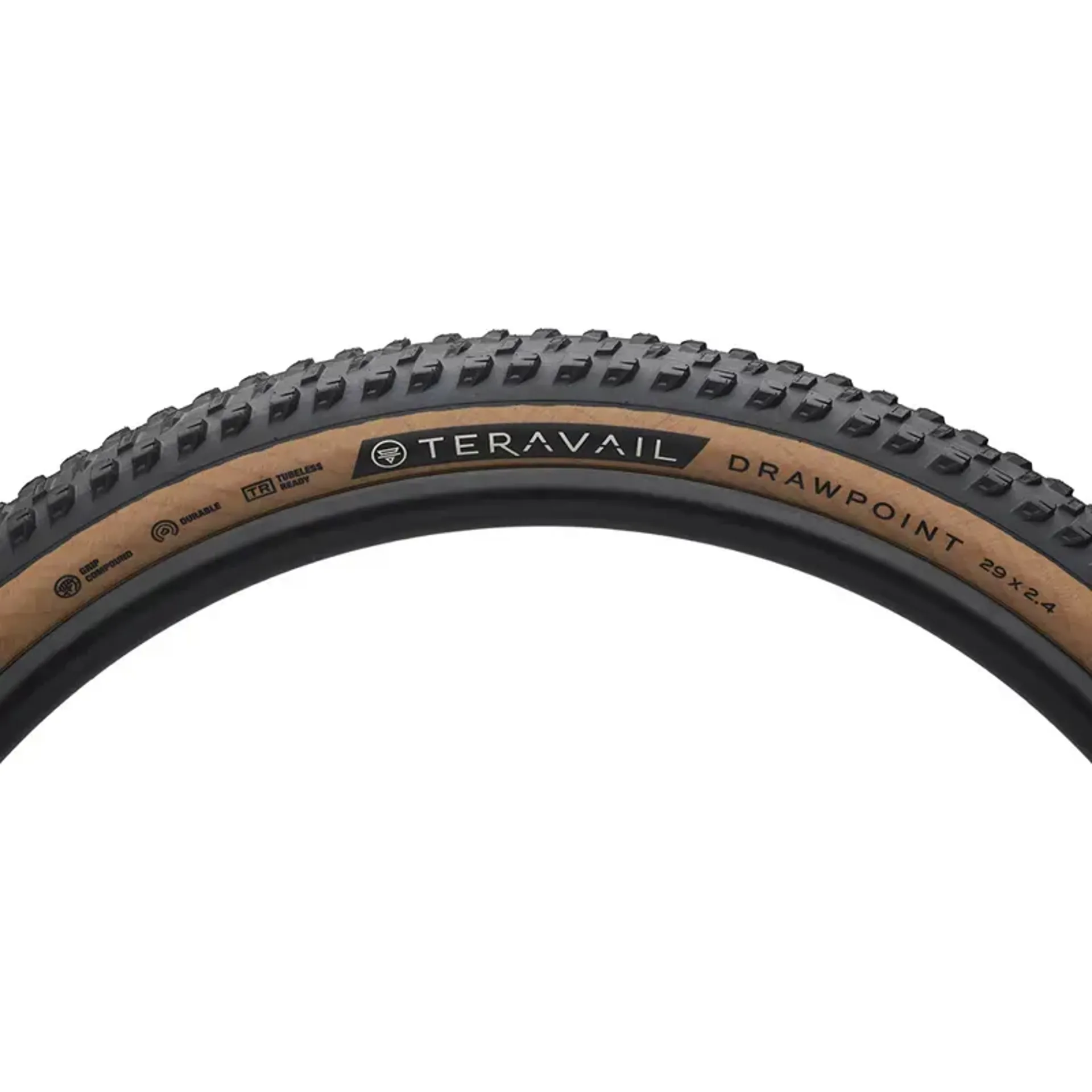 The Teravail Drawpoint is a downcountry tire designed for straight-line speed, braking power, and confident control on trails that feature flow and tech in the same lap. The Drawpoint inspires you to ride creatively with fast-rolling center lugs and elevated shoulder lugs for playful, predictable performance as you progress and push your limits. It pairs well with other Teravail MTB tires to dial in a ride experience you will love.