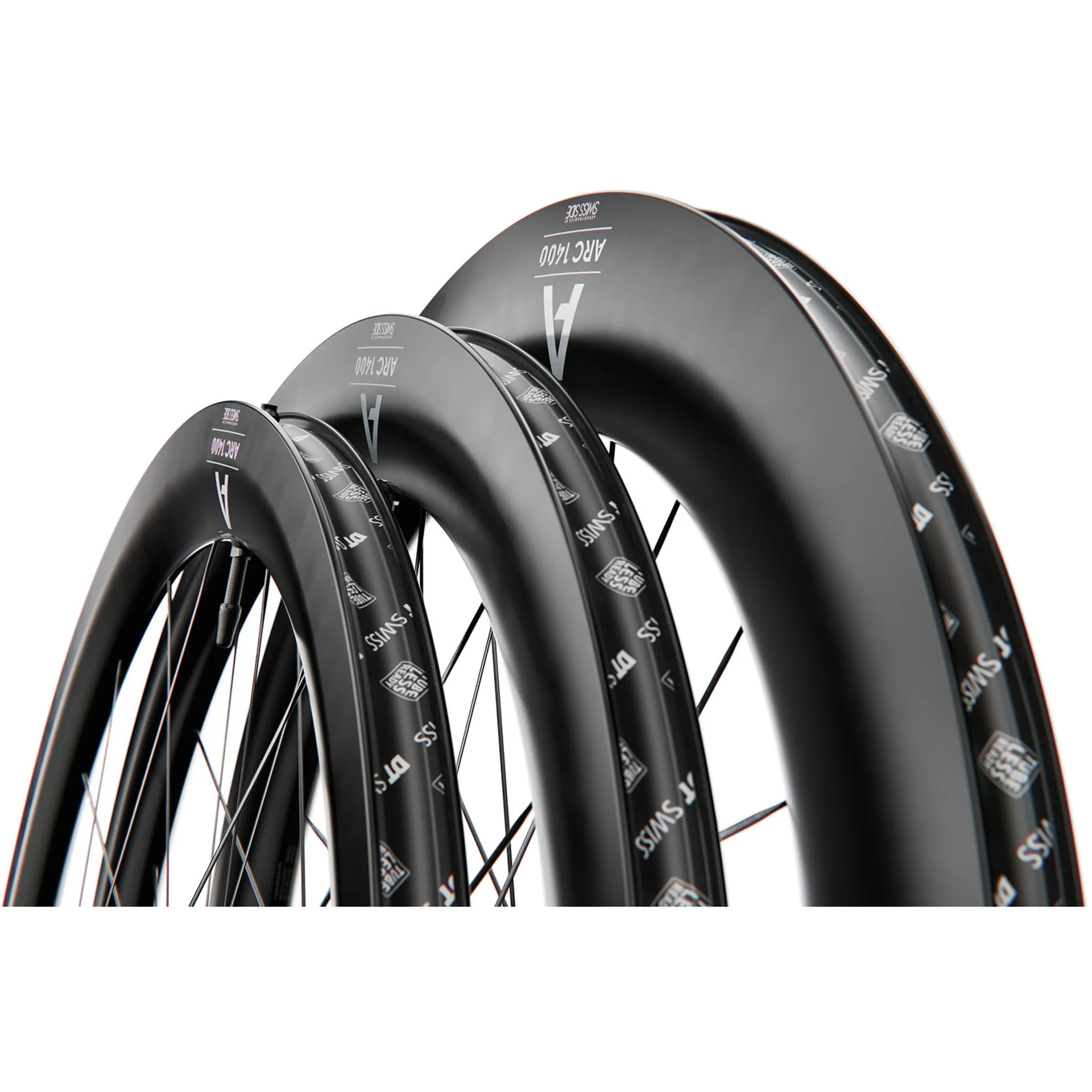 The 3rd generation ARC 1400's use a fully proprietary carbon rim developed in conjunction with the Aero research team at Swiss Side and extensively tested at the GST wind tunnel just over the border in Germany.