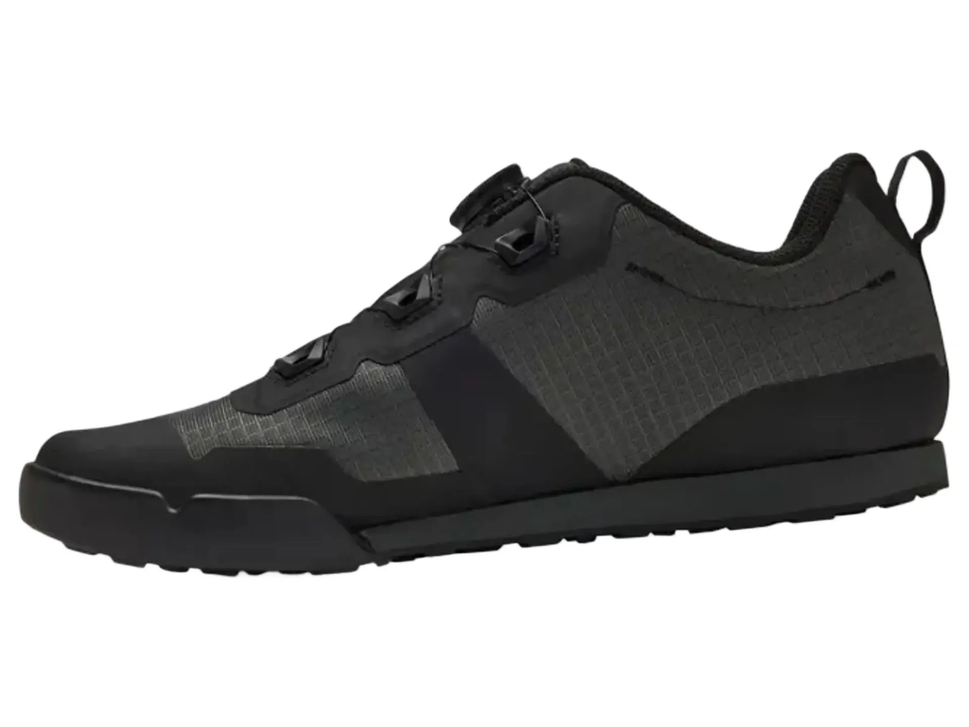 Built on Giro's new last, the design places the foot closer to the pedal and features a flat profile for optimal pedal contact. The Tracker has direct lineage to the performance of Giro's more aggressive flat pedal models without any excess bulk. The Tack Rubber outsole engages flat pedal pins with confidence, while a dual-layer EVA midsole provides comfort for off-the-bike hikes. A single, tongue-mounted BOA® L6 dial allows for quick on/off and micro-adjustment for a supportive fit.