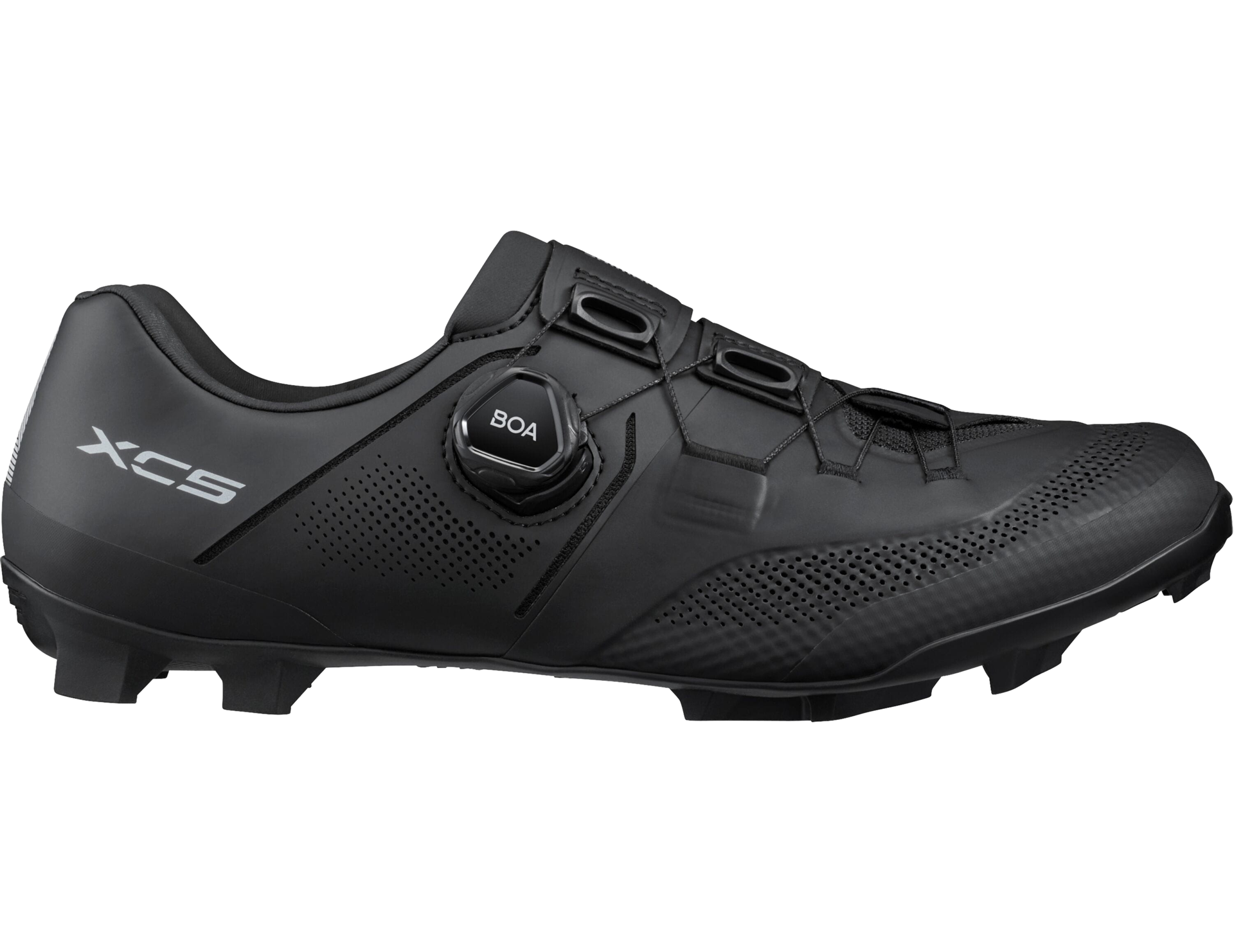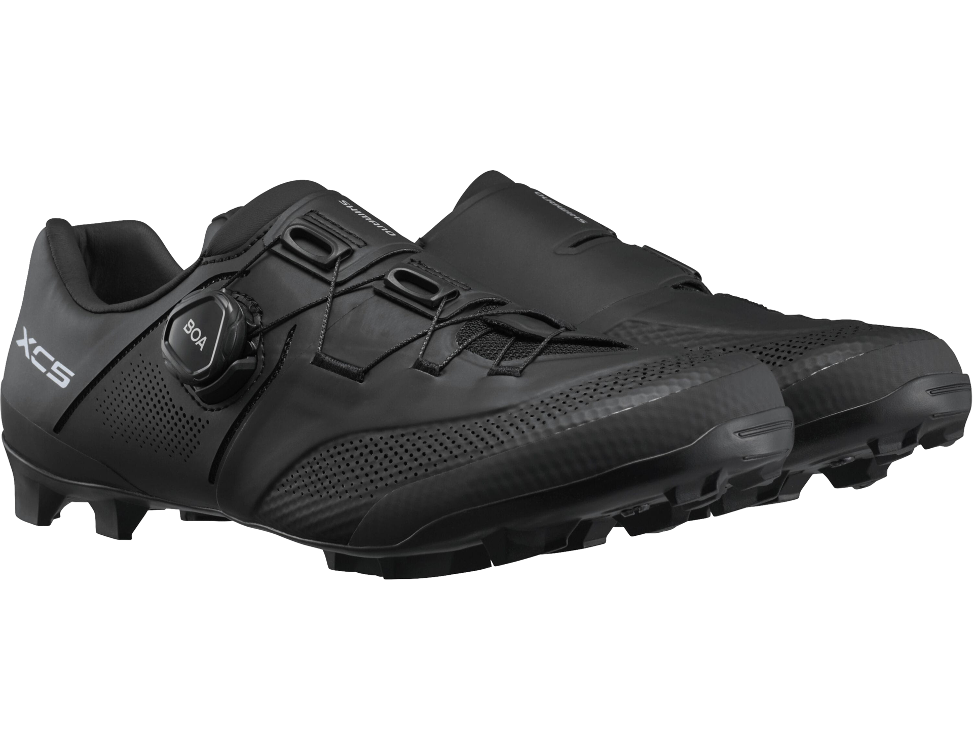 Designed for aspiring racers seeking high-end performance and style, the Shimano XC5 combines durability, comfort, and precision fit for XC riding. The partially recycled nylon midsole reinforced with carbon fiber delivers efficient power transfer while maintaining a lightweight profile. The BOA® Fit System with L6C dial and Shimano-engineered lace profile ensures a secure, adjustable fit, complemented by a surround-wrapping upper for a glove-like feel. The perforated synthetic leather upper improves breathability and comfort during long rides.