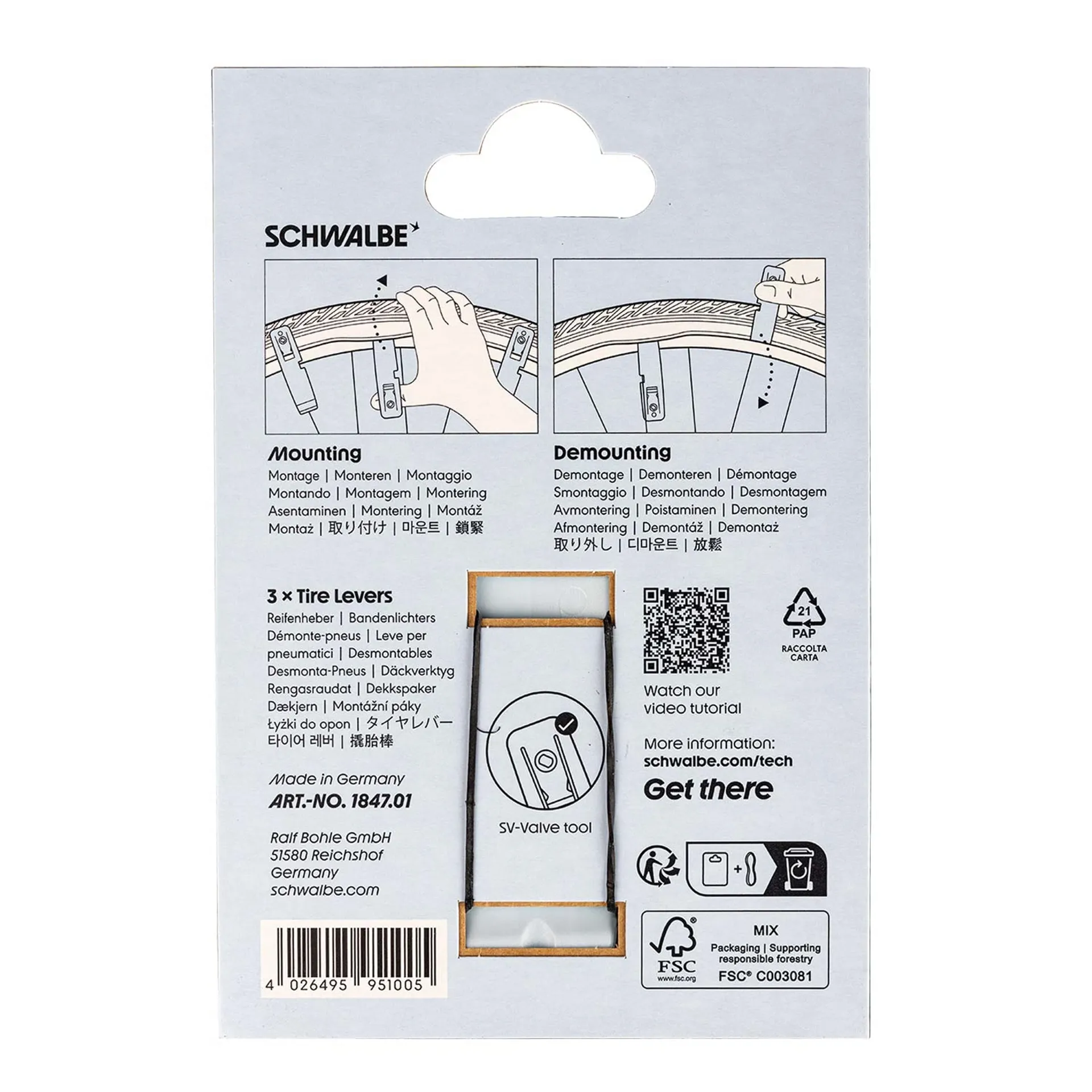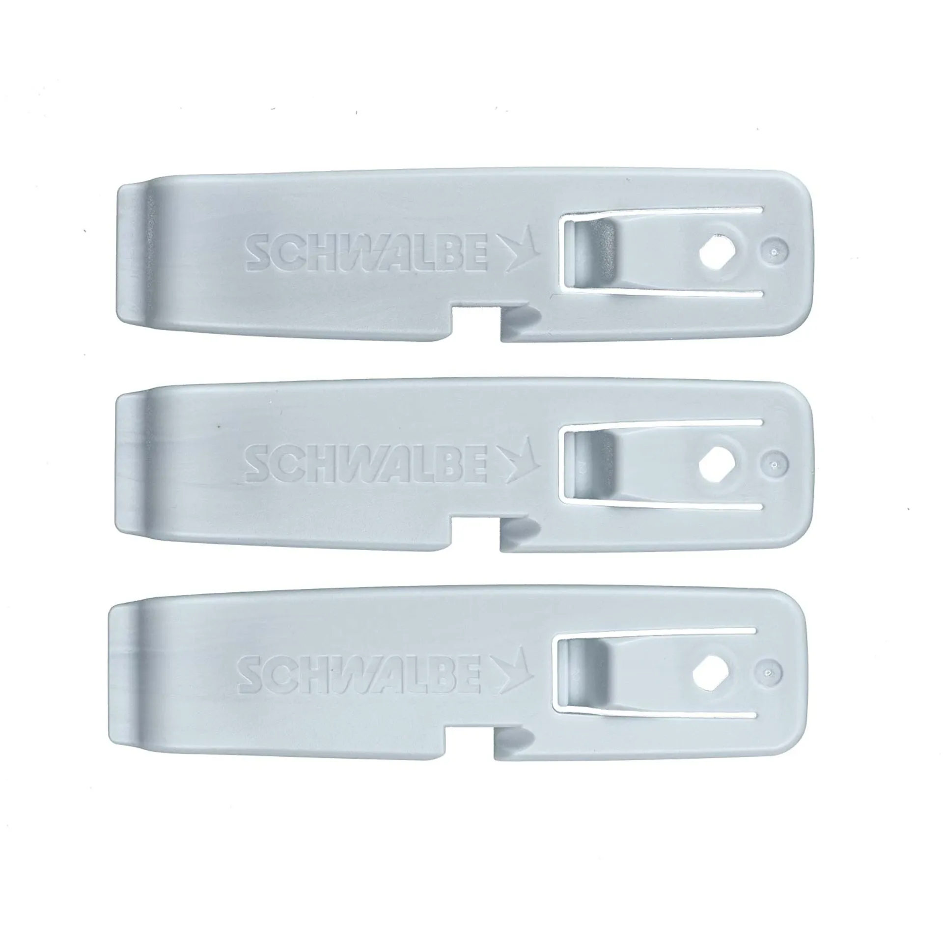 They are especially helpful in difficult assembly operations. You can clip the lever onto the rim to fix the already mounted section of the tyre, ensuring it will not slide out when the last section is levered onto the rim.